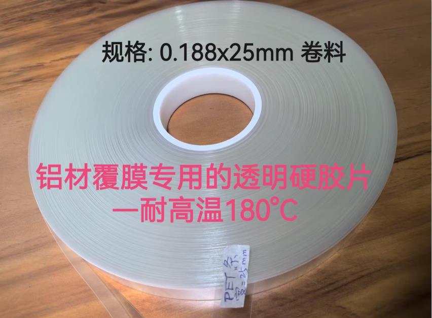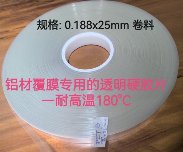 铝材覆膜胶条,是采用耐高温180°C的透明PET膜,经过精密裁切而成,是铝材覆膜的专用胶条。